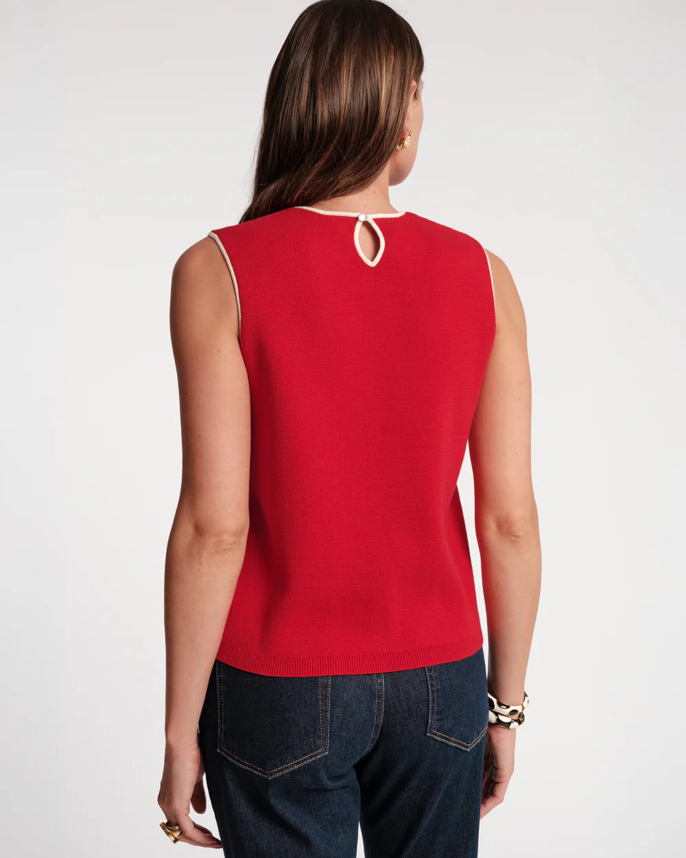 Meet the Darling Shell, the piece your wardrobe has been dreaming of. Style solo or paired with our matching Darling Cardigan; it's effortlessly chic. Crafted in 100% cotton with a striking contrast oyster piping, this Darling is sure to steal your heart. It's not just perfect, it's darling in every way! Cotton stitch medium-weight fitted shell with sleek piping detail for a polished look. Keyhole closure at the back for a touch of elegance. Crafted from 100% cotton for ultimate softness and breathability.