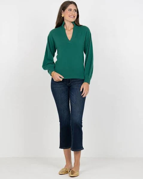 The Lolli Sweater in Pink Glo from Emily McCarthy combines timeless design with luxurious comfort. Featuring a classic stand collar, blouson sleeves, and a subtly tailored silhouette, this piece is crafted from 100% cashmere for exceptional softness and durability. The vibrant green hue adds a feminine pop to your wardrobe, making it a versatile go-to for seasons to come. Classic stand collar, blouson sleeves, slightly tailored silhouette.