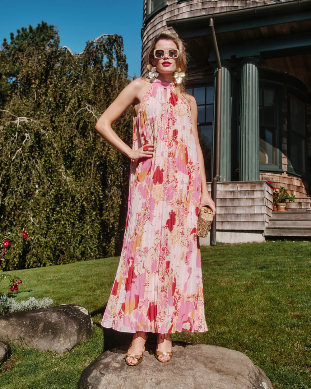 The Slim Pleated Dress from Frances Valentine is a show-stopping maxi, designed to move with you. Crafted with delicate pleats that create effortless flow, its slim silhouette feels both elegant and modern. The halter neckline and keyhole cutout at the décolletage add a subtle, sophisticated allure, while the sleeveless cut keeps it breezy and refined. Perfect for warm-weather occasions, sunset soirees, and highball evenings, this dress is the epitome of timeless glamour and effortless movement.
