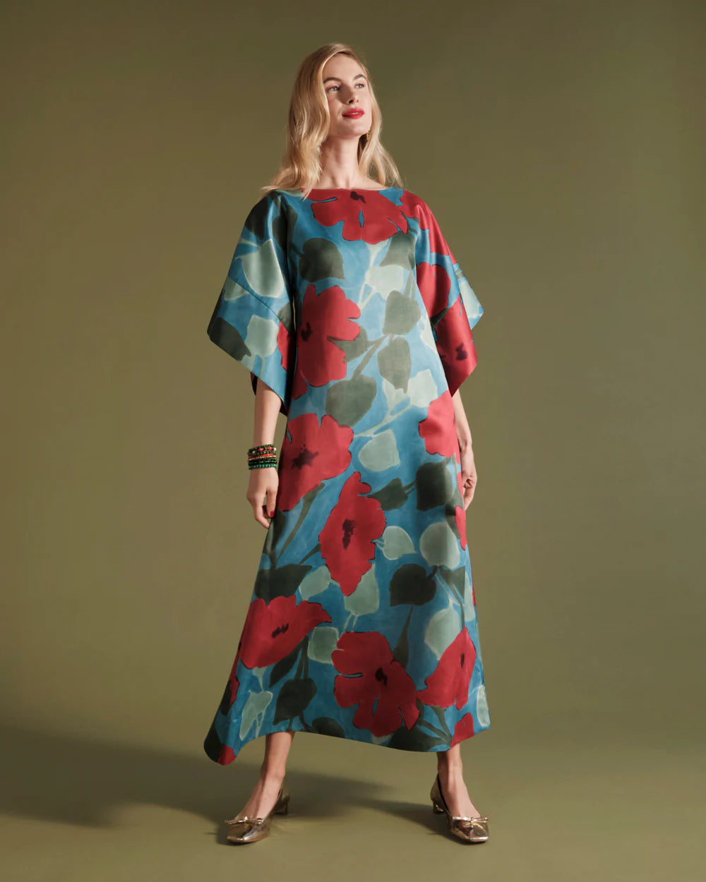 An elegant gown, draped in flowers. In a gorgeous print, the Spinnaker Maxi reemerges, ready for fall. Featuring a sophisticated boatneck collar, pockets, and unique statement bell sleeves, this timeless design drapes beautifully over the figure in a flattering flared silhouette.